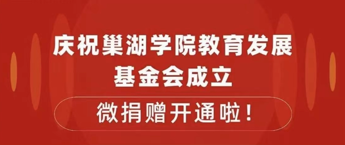 • 慶祝巢湖學(xué)院教育發(fā)展基金會(huì)成立,微捐贈(zèng)開(kāi)通啦!